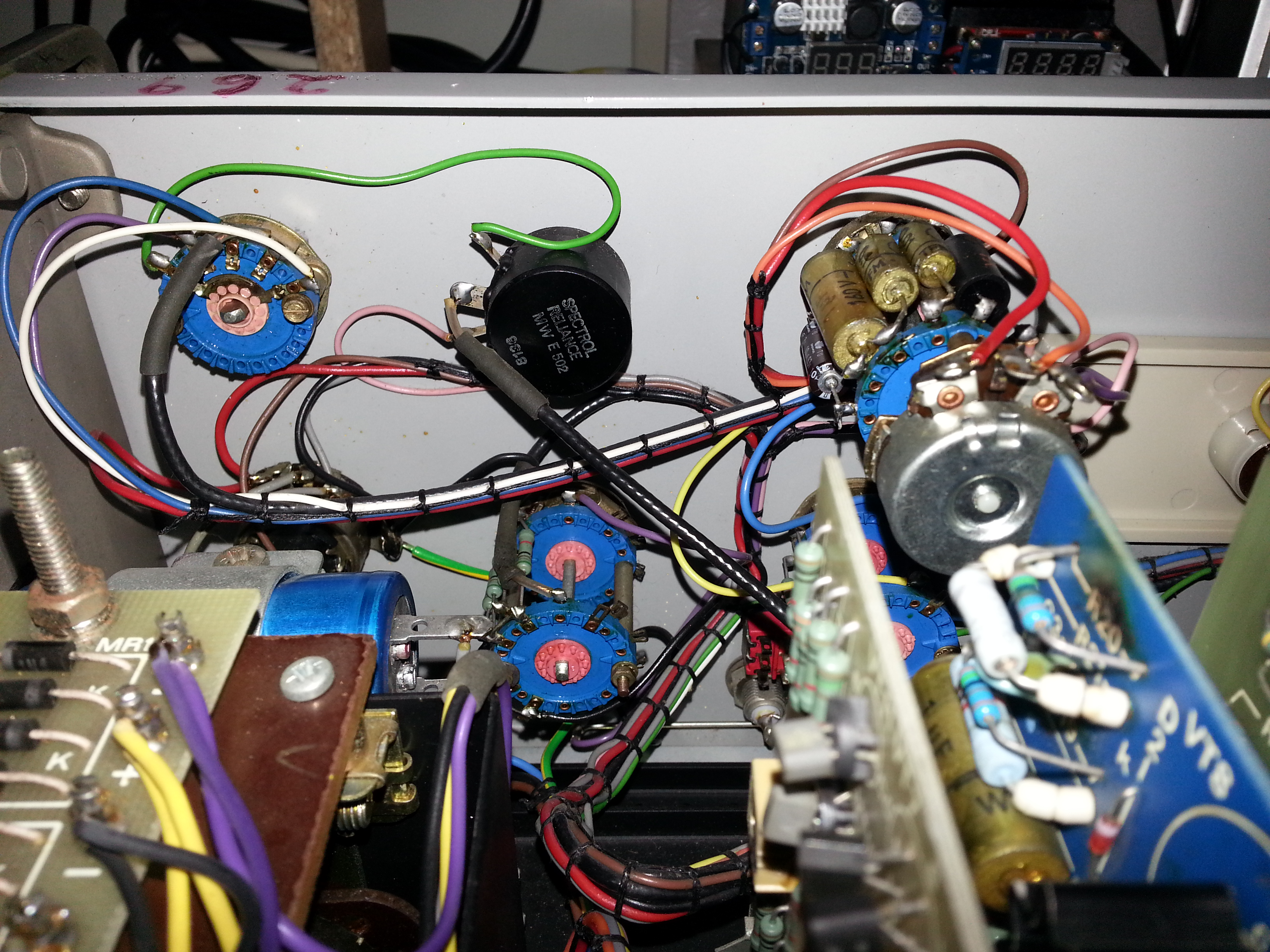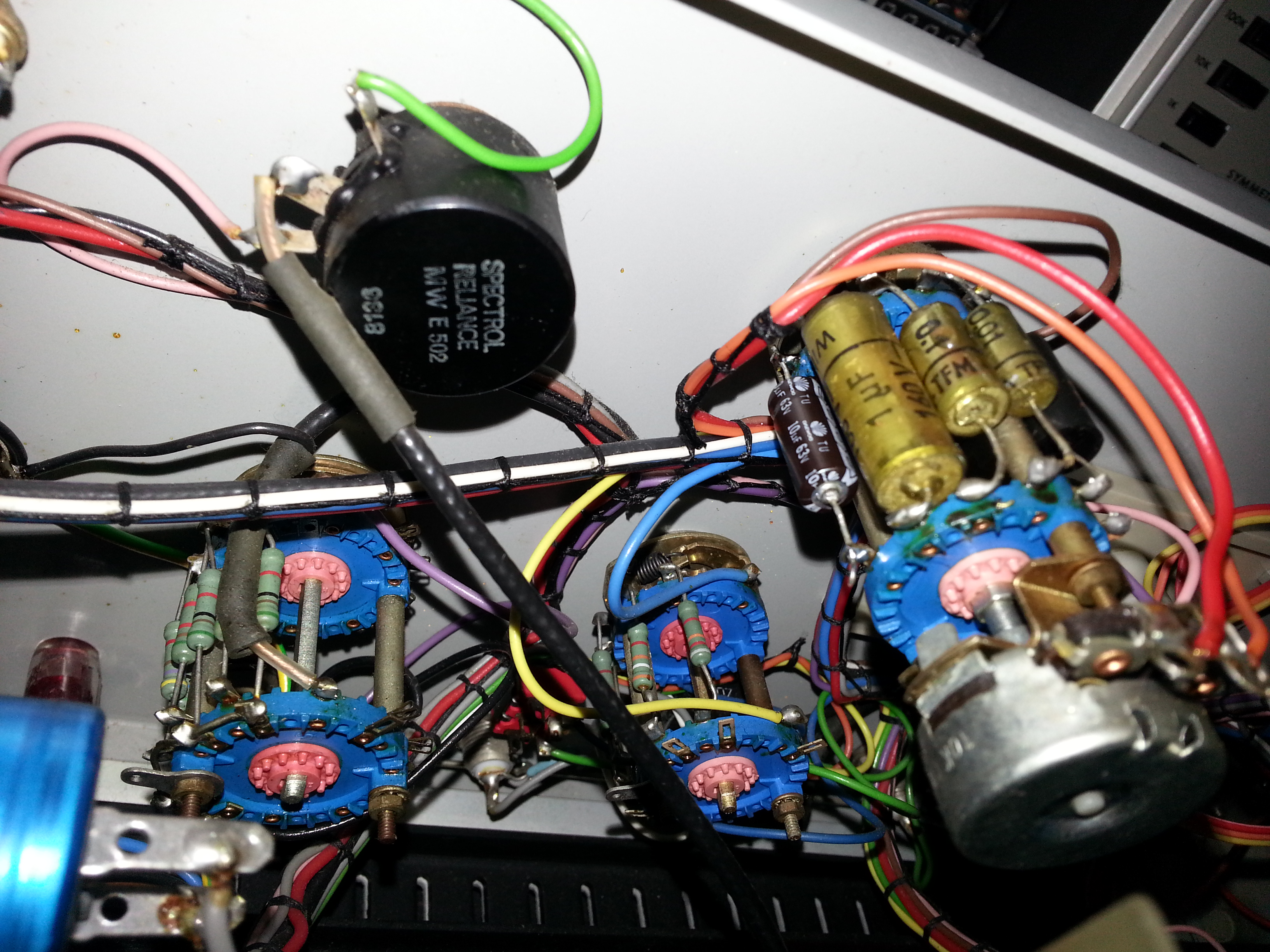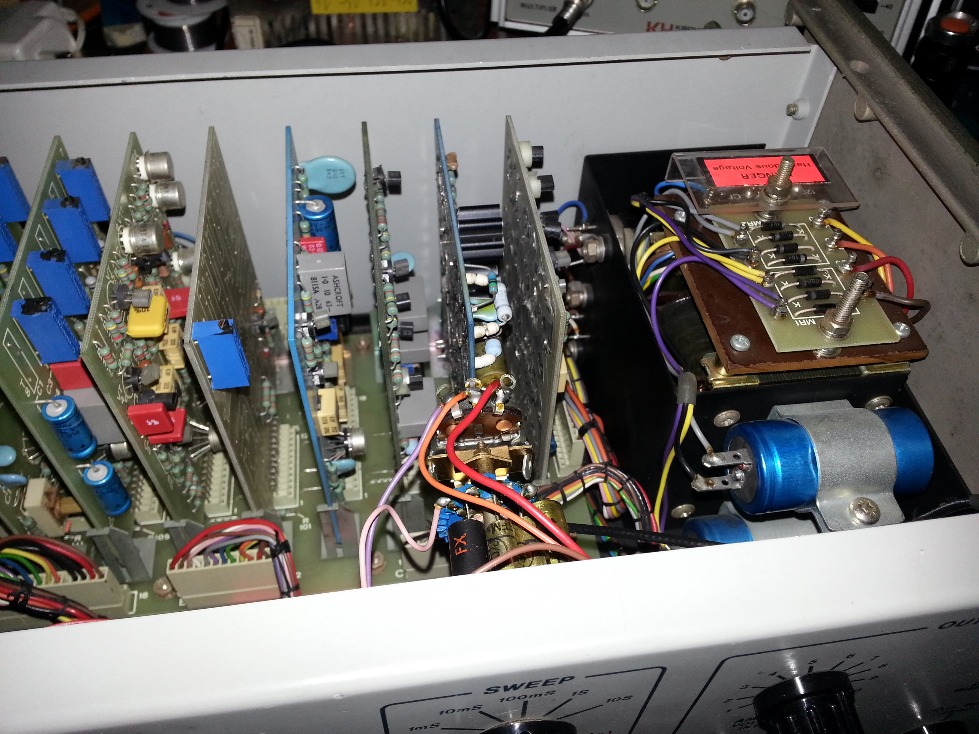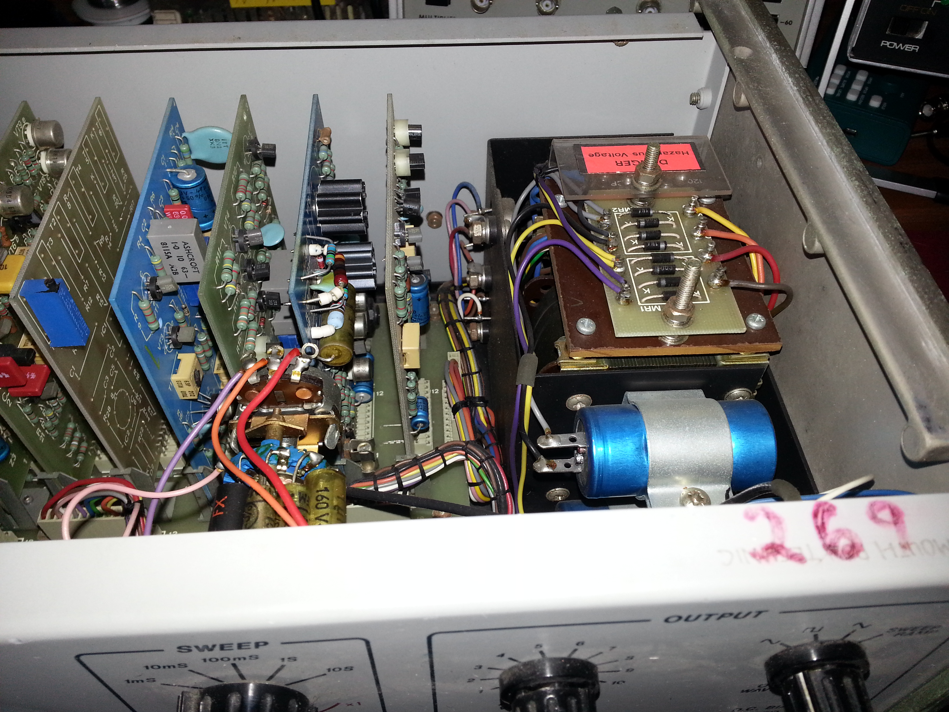 i was also able to find some replacements for the missing capacitors too (a 10uf for the 10sec sweep and a 10uf for the x1 frequency range),