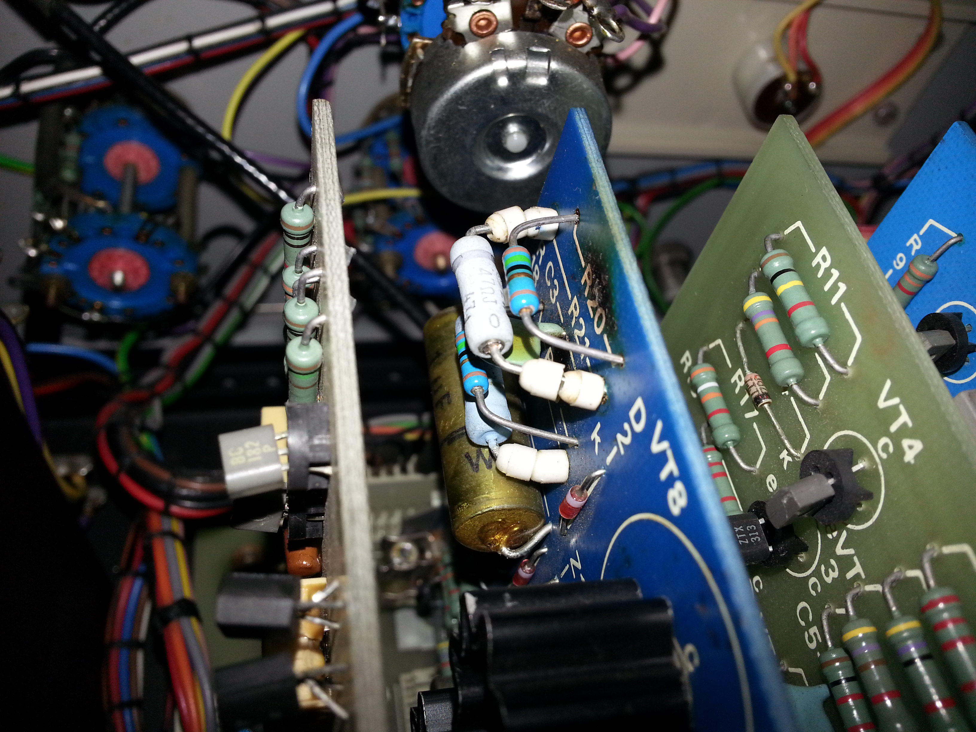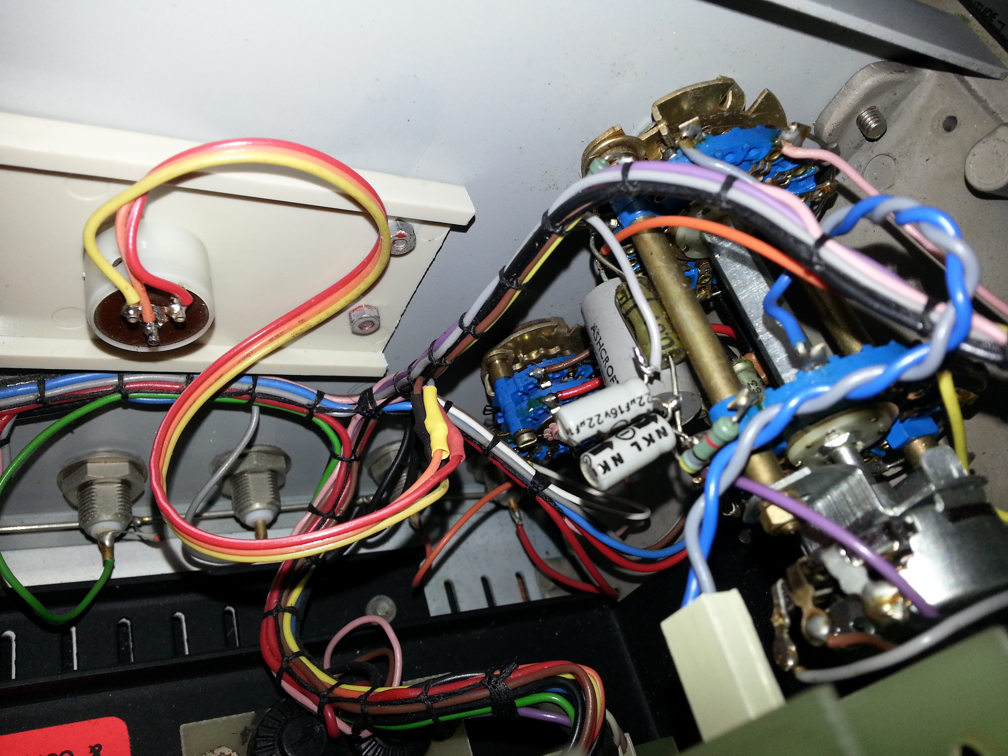 i also replaced the 47ohm resistor and the two clamping diodes on the main amp board (the 47ohm resistor tested fine but looked burnt), i also fixed the neon indicator on the front, cleaned the card connecter pins, switch contacts and fitted a power lead.